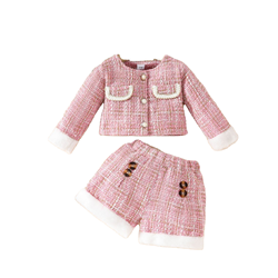 أطقم تنورة عصرية من قطعتين للفتيات منقوشة بأزرار تويد فستان قصير للدبابات وسترة قصيرة بأكمام طويلة