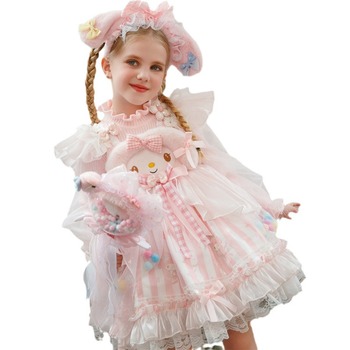 فستان لوليتا للفتيات في جميع المواسم برقبة دائرية فستان بحمالة للأميرات مع زينات من الدانتيل للخريف والشتاء ملابس جديدة للفتيات الصغيرات