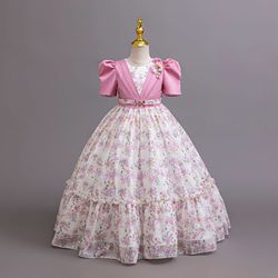 2022 New Design Kids Puff Sleeve Prom Ball Gown Girls Pageant Tulle Flower Princess Party Maxi Wedding Dress