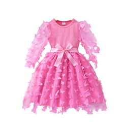 Toddler Baby Girl Dress Long Sleeve Mesh Floral Heart Print Woolen Bow Tutu with Lace Sweet Casual for Autumn Season