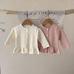 2025 autunno giacca in tinta unita per bambini Cardigan girocollo Cardigan maglione per bambine Baby Jumper vestiti di cotone per bambini