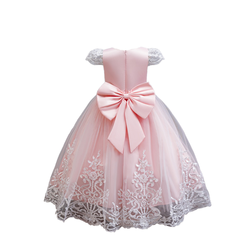 Abito da ballo in raso formale per bambine a maniche lunghe con motivo floreale con pomello rosa ricamato per l'estate in poliestere