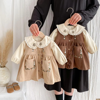थोक शरद ऋतु बेबी कढ़ाई फूलों की पोशाक 2-टुकड़ा सेट लड़कियों के लिए 2024