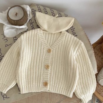 Cardigan simples infantil primavera e outono malha jaqueta bebê roupas feitas de algodão para clima quente