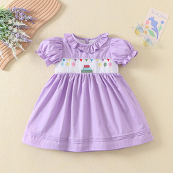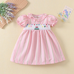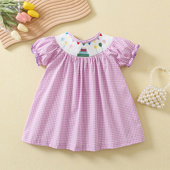 Novos Designs 2025 Bebê Menina Verão Algodão Somocked Puffy Vestido De Manga Curta 2-3 Anos
