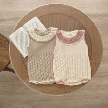 2025 Outono Primavera Infantil Bodysuit Sem Mangas Algodão Bebê Knitting Halter Romper Bonito Ruffle Baby Girl Roupas