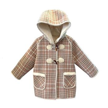 Alta qualidade rosa xadrez Hoodie para meninas quente manga comprida casaco para outono inverno Casual impresso Zipper Encerramento