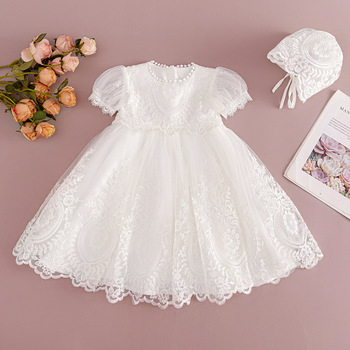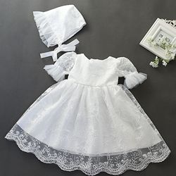 Vestidos de renda para batizado, batizado e bonnet para bebê menina 2021